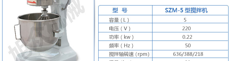 SZM-5型攪拌機(jī),可用于攪拌奶油、蛋糕液、餡料及和制面團(tuán)等操作。打蛋攪拌機(jī)等作攪拌食料、揉和面團(tuán)之用,是生產(chǎn)優(yōu)質(zhì)糕點(diǎn)的理想設(shè)備,適用于酒店、飯店、學(xué)校部門、面包屋以及食品廠家。