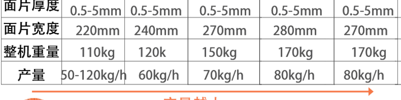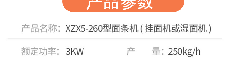 名稱MT260-5多功能面條機 電源 功率3kw 產量200kg/h 尺寸1800*620*1400mm 重量560kg 規格 其他