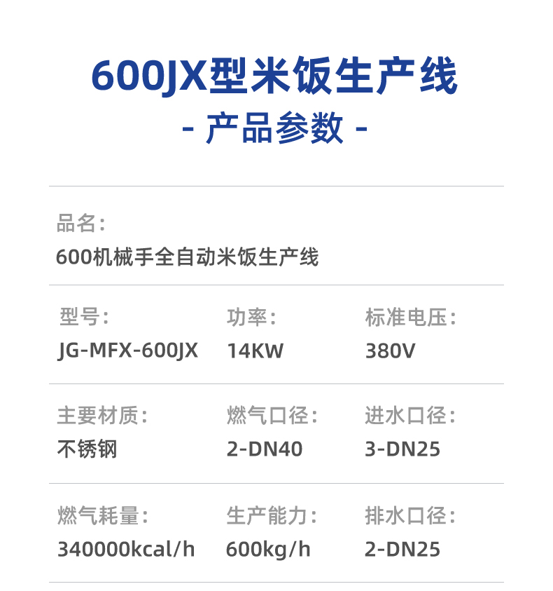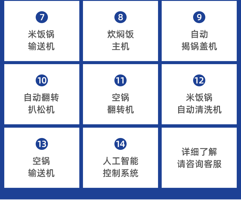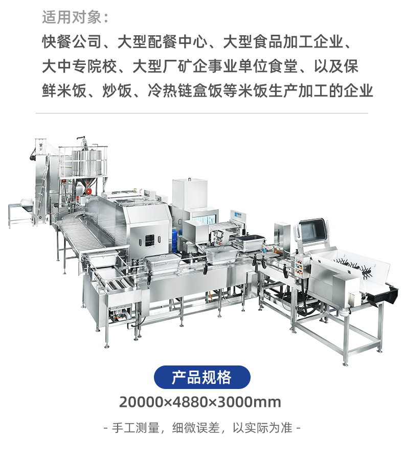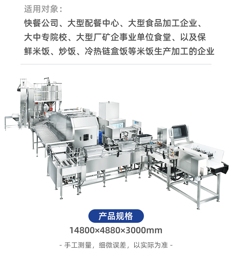 名稱機械手全自動米飯生產線 電源 380V 功率13KW 產量各型號不一,請咨詢銷售員 尺寸各型號不一,請咨詢銷售員 重量各型號不一,請咨詢銷售員 規格各型號不一,請咨詢銷售員 其他