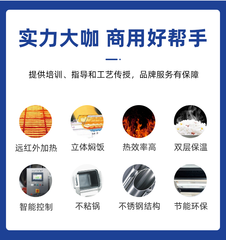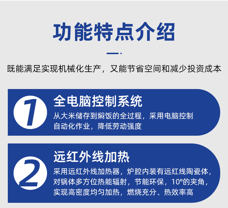 機械手全自動米飯生產線,實力大咖 商用好幫手,提供培訓、指導和工藝傳授,品牌服務有保障。遠紅外加熱、智能控制、立體燜飯、不粘鍋、熱效率高、不銹鋼結構、雙層保溫、節能環保。