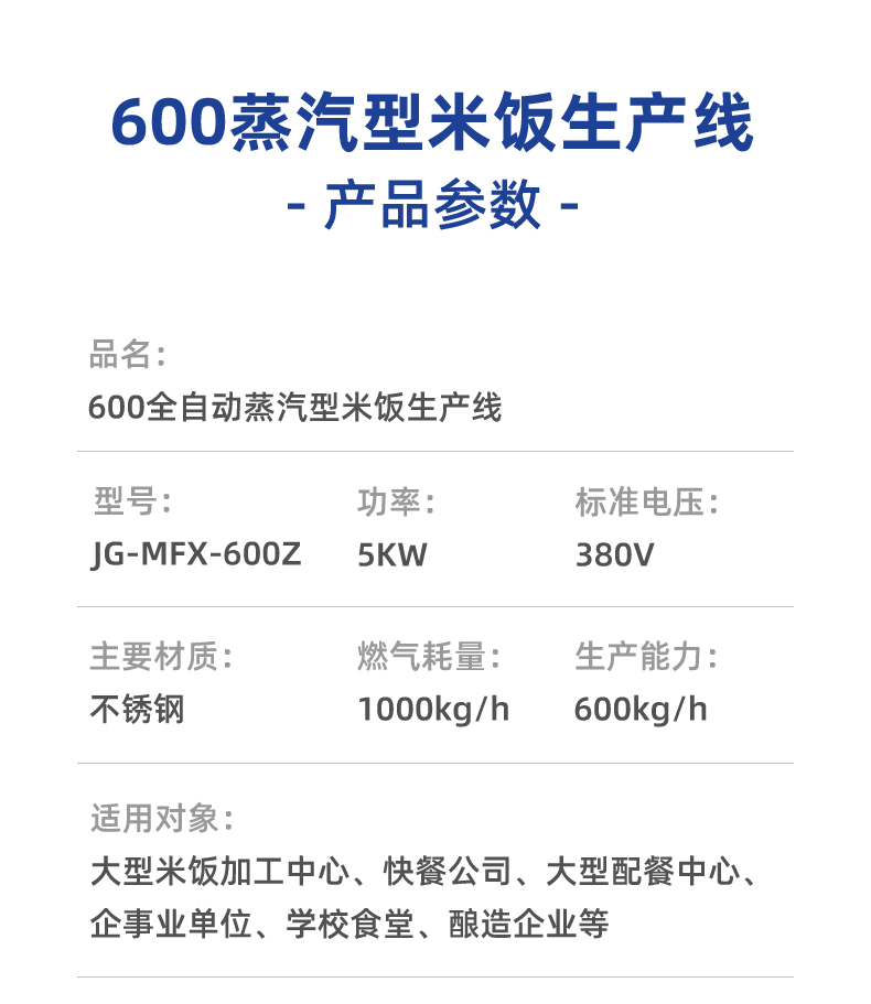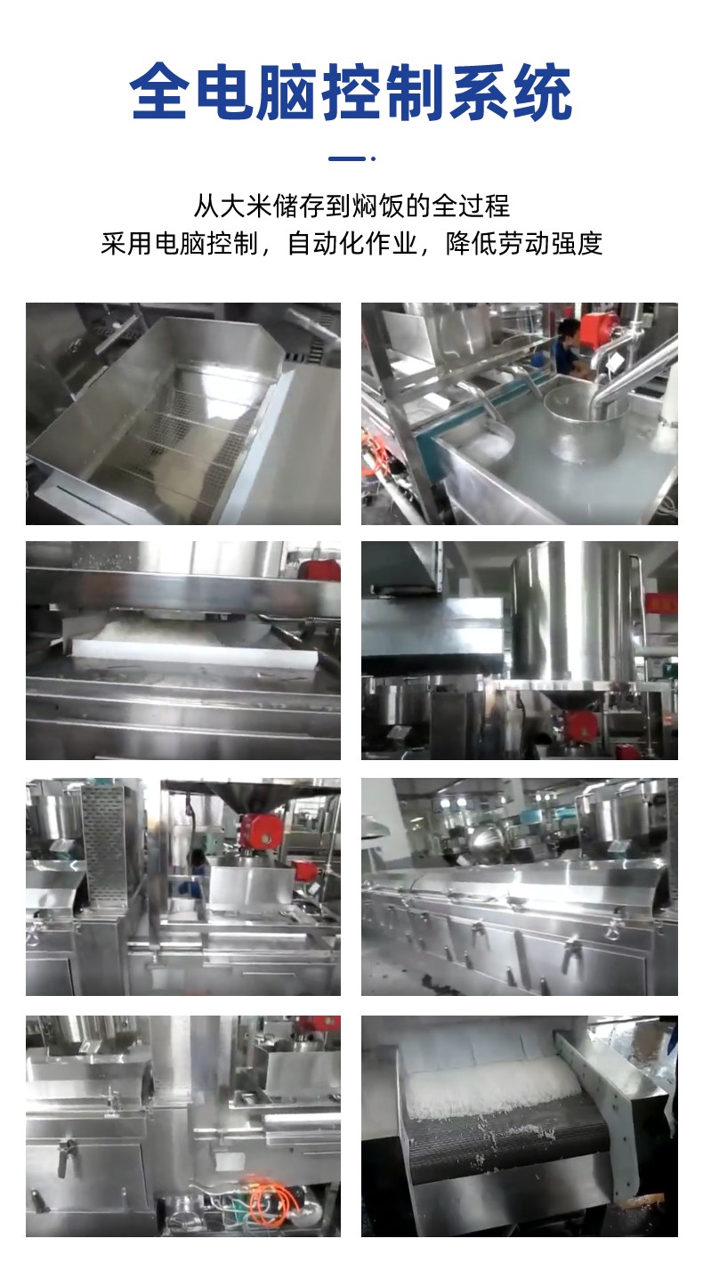 全自動蒸汽型米飯生產(chǎn)線,全電腦控制系統(tǒng),從大米儲存到燜飯的全過程采用電腦控制,自動化作業(yè),降低勞動強度。實現(xiàn)全自動生產(chǎn),多功能,一機多用,可以用于在蒸制各種食物實現(xiàn)全自動生產(chǎn),無需人工服務(wù)。