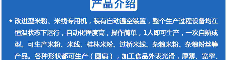 SZ-400多功能米粉機,生產(chǎn)多樣性可生產(chǎn)米粉、米線、粉絲、粉條、、年糕、玉米面條、各種雜糧粉絲、各種面條、雜糧面條、彩色面條以及以紅薯、玉米、大豆、蠶豆等制成淀粉為原料的等多種食品而且每種食品厚薄、粗細等規(guī)格可根據(jù)需要任意調(diào)整。