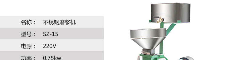 名稱SZ-15不銹鋼自動磨漿機 電源220v 功率0.75kw 產量1400(轉/分) 尺寸465*250*745mm 重量45kg 規格 其他
