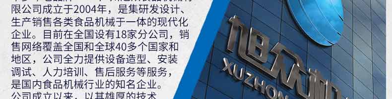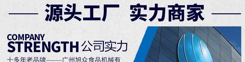 廣州旭眾食品機械有限公司是一家集科研開發,生產設計,營銷服務為一體的現代化生產企業。現代化生產車間,精湛制造技術,所產機械歷經市場重重考驗,不斷贏得海內外客戶的贊譽。