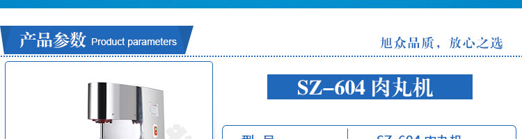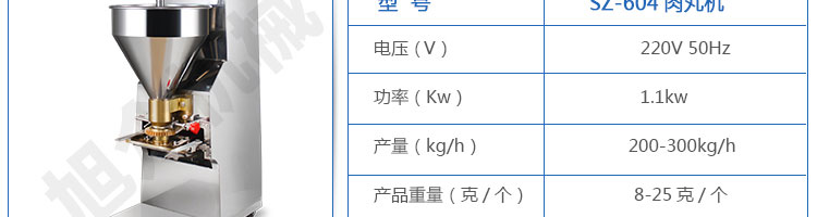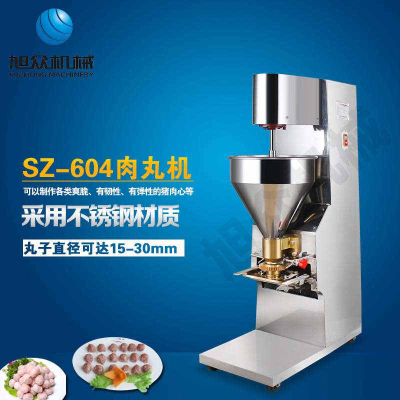 SZ-604肉丸成型機,肉丸成型機采用不銹鋼材質,丸子直徑可達15-35mm,可以制作各類爽脆,有韌性、有彈性的豬肉丸、魚丸、牛肉丸、貢丸、雞肉丸等