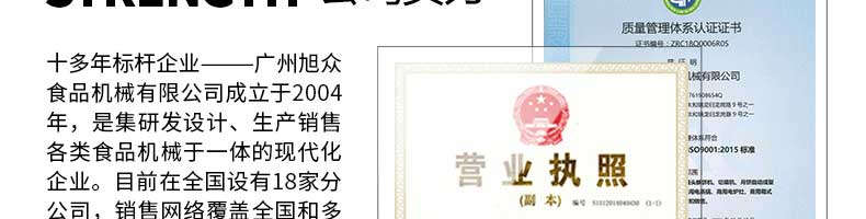廣州旭眾食品機械有限公司是一家集科研開發,生產設計,營銷服務為一體的現代化生產企業。現代化生產車間,精湛制造技術,所產機械歷經市場重重考驗,不斷贏得海內外客戶的贊譽。