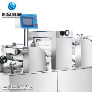 xz-15c三道搟面酥餅機,仿手工制作面食產品的機型,占地面積小,重量輕,運用搟面杖壓面和打擊面團,以保證高面筋性和面帶的密度,并綜合考慮面食的口感而研發。可生產東北糖酥餅,東北大香酥餅,蘇式月餅,芝麻餅,鮮花餅,老婆餅。購機免費提供工藝技術