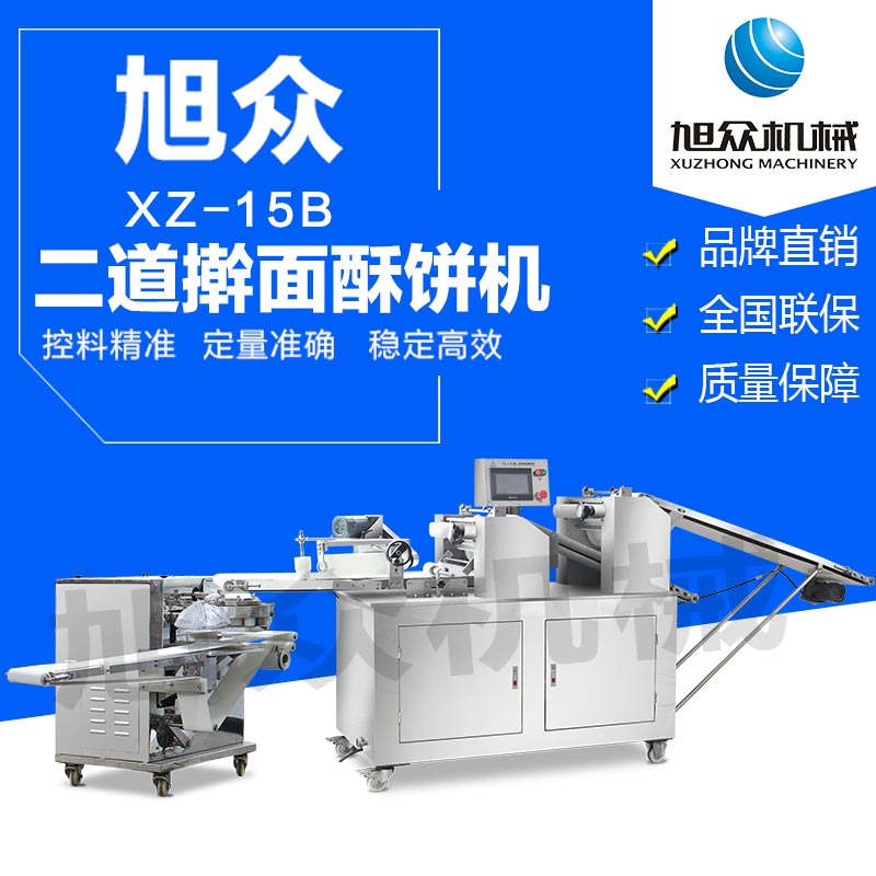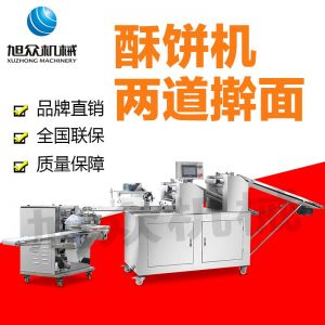 xz-15B二段酥餅機,生產速度快、效率高、生產流程流暢,各環節都輔以精密電控設備控制,不會出現堵面、破酥等現象??缮a蘇式月餅、肉松餅、老婆餅、廈門餡餅、金華酥餅、拉絲面包等等特色酥餅,適用于大、中型糕餅生產廠家,免費提供工藝技術。