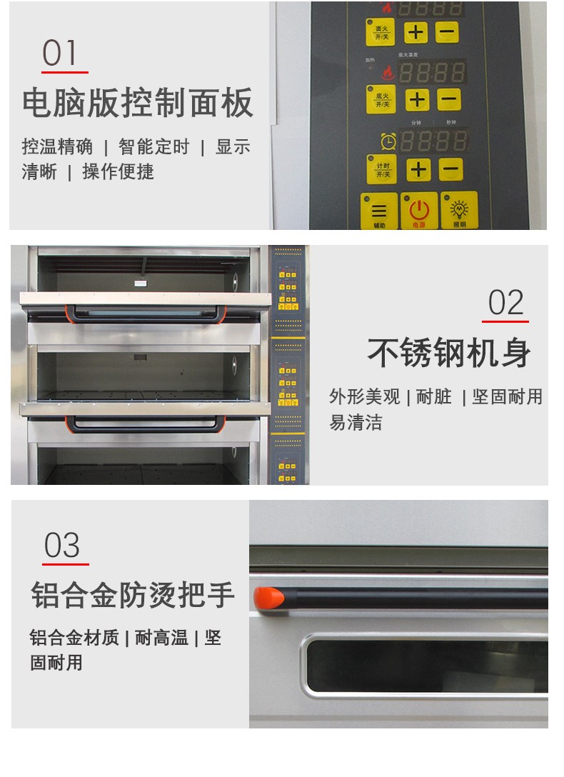 名稱三層六盤電腦版電烤箱 電源380V 功率19.8Kw 產量 尺寸1255*816*1455 mm 重量240KG 規格三層六盤 其他