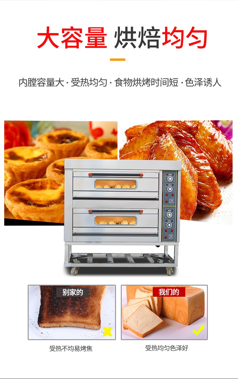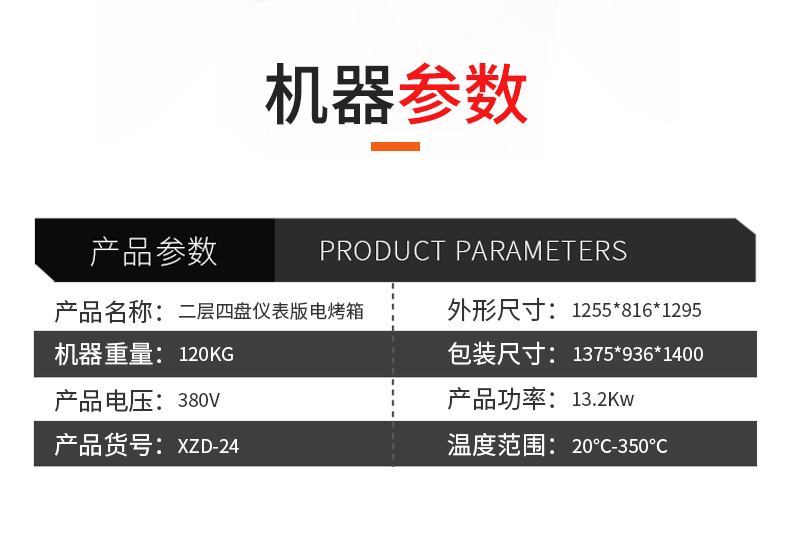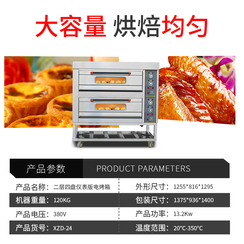 名稱二層四盤儀表版電烤箱 電源380V 功率13.2Kw 產量 尺寸1255*816*1295mm 重量120KG 規格兩層四盤 其他