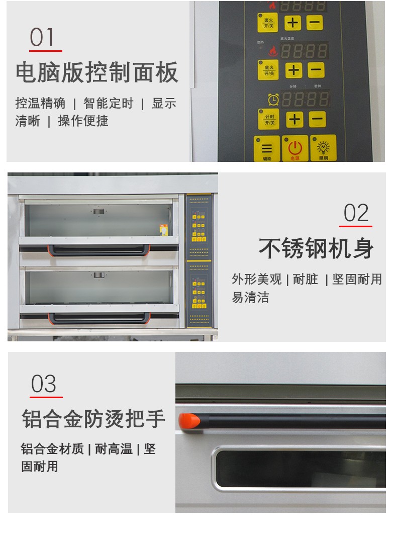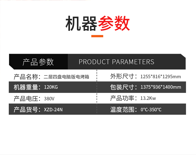 名稱二層四盤電腦版電烤箱 電源380V 功率13.2Kw 產(chǎn)量 尺寸1255*816*1295mm 重量120KG 規(guī)格兩層四盤 其他