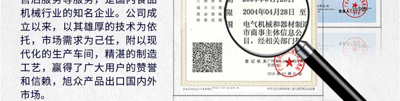 廣州旭眾食品機械有限公司是一家集科研開發,生產設計,營銷服務為一體的現代化生產企業?,F代化生產車間,精湛制造技術,所產機械歷經市場重重考驗,不斷贏得海內外客戶的贊譽。