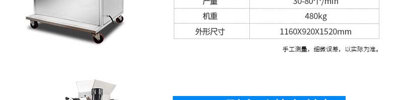 名稱XZ-68月餅包餡機 電源220/380V 功率2.5KW 產量各型號不同,請咨詢銷售員 尺寸1200X930×1355mm 重量450kg 規格各型號不同,請咨詢銷售員 其他