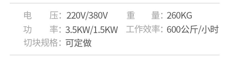 名稱禽類剁塊機 電源220v/380v 功率3.5kw/1.5kw 產(chǎn)量600公斤/小時 尺寸1300*700*850mm 重量260kg 規(guī)格可定做 其他